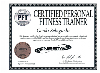 NESTAとは全米エクササイズ&スポーツトレーナー協会が認定している、フィットネスの世界標準資格です。